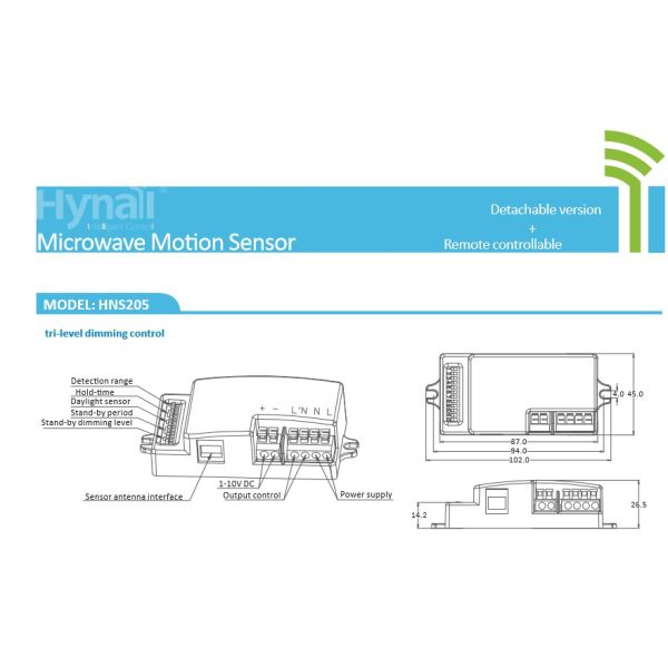 High Frequency motion sensor HNS205 microwave motion sensor dimming control
